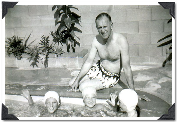 Claudia Tyler, Cyndi Henderson, and unknown friend. Arthur Cross (Cyndi's Grandfather) is sitting on the deck.