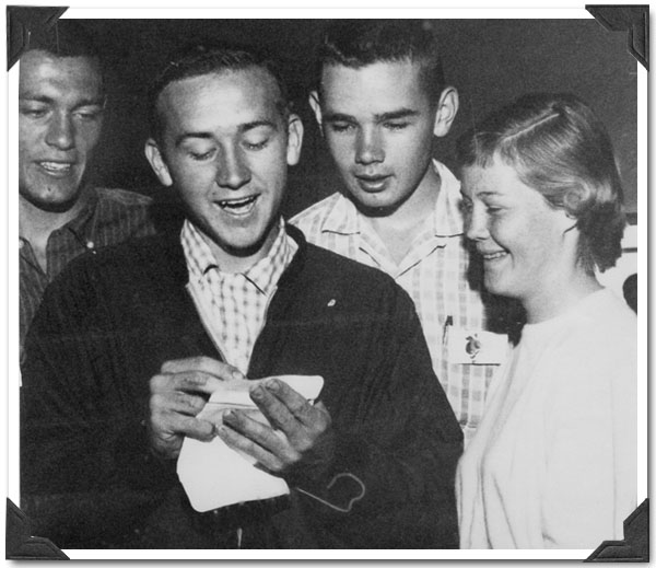 Mike Howard, Class of '59, Victor Ashford, Class of '60, Charlie Lostlen, Class of '60, Linda Hayden, Class of '61 (Linda graduated from Bolsa Grande)